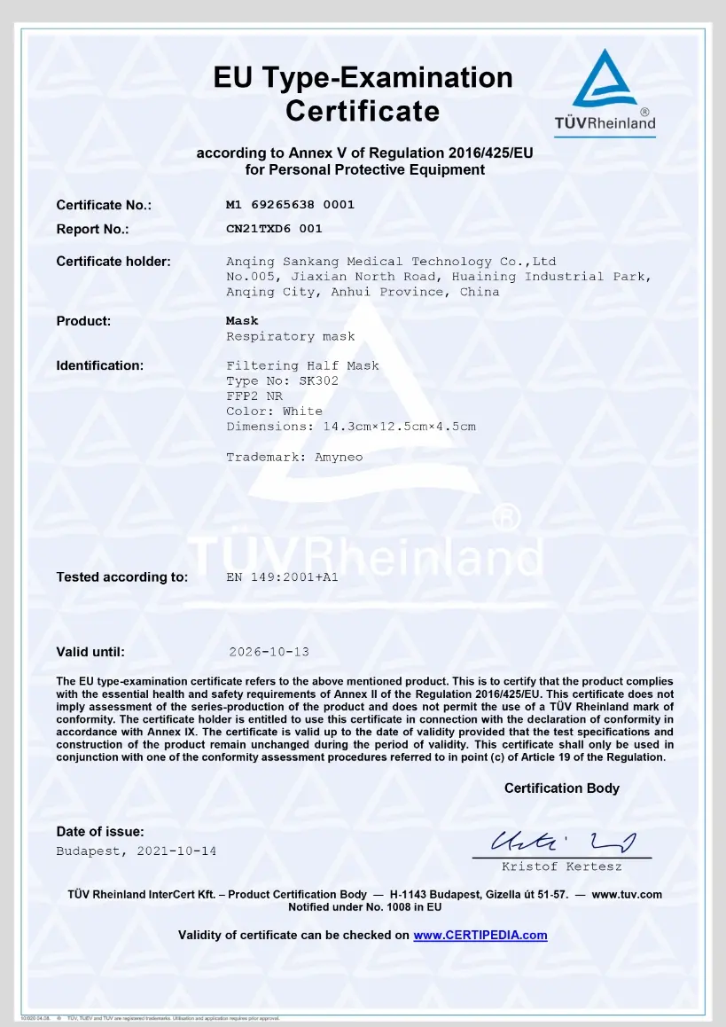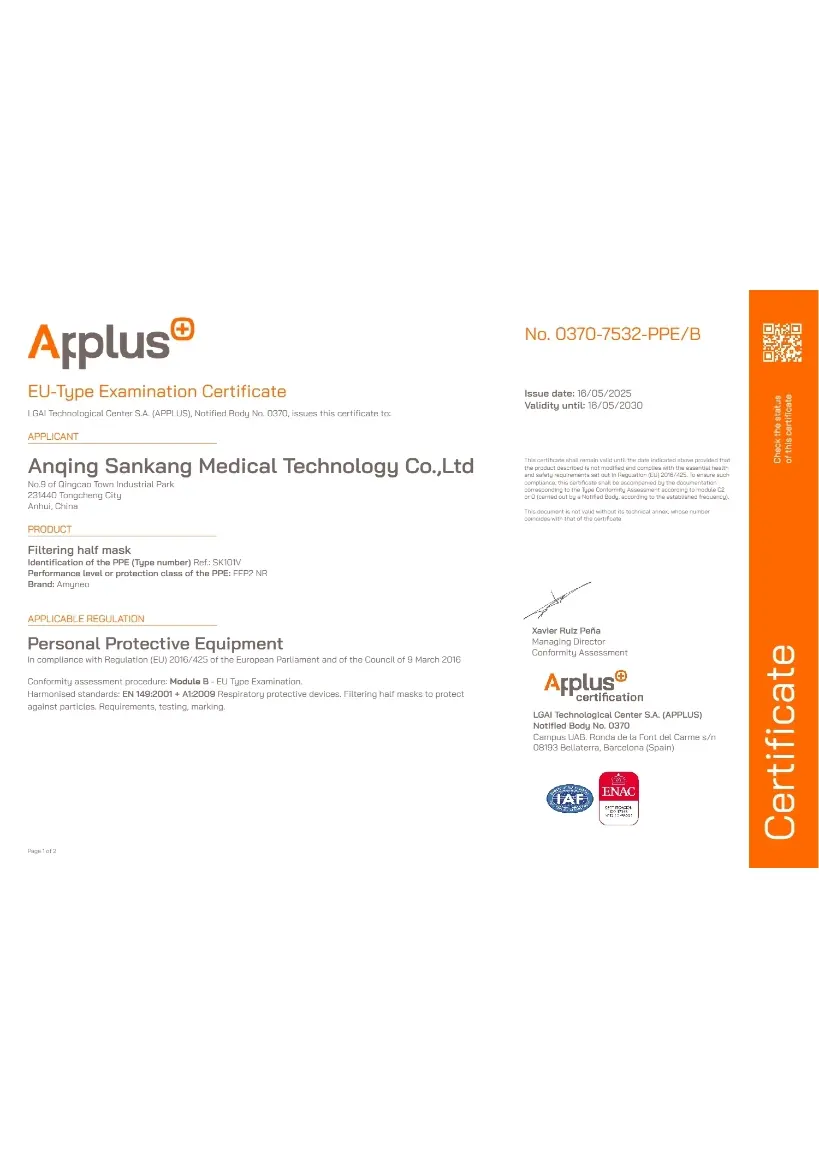 Sankang specializes in providing high-quality respiratory protection solutions for industrial and medical sectors. As a modern manufacturing base with comprehensive EU PPE compliance capabilities, we are built on a foundation of technology and quality, committed to becoming a reliable partner in the global supply chain for our customers.